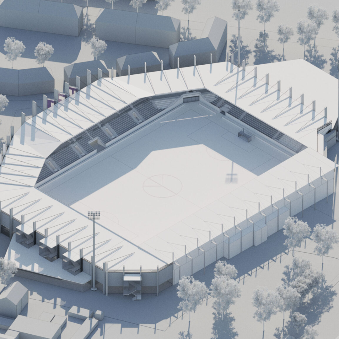 Ostkurve: Das Herz des Stadions erhält eine Dachterrasse/Promenade und eine obere Erschließungsebene, die den Tribünenzugang verbessert und für eine geschlossene, stimmungsvolle Kurvenstruktur sorgt.